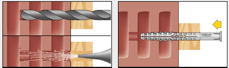 Vyvŕtame dieru o priemere 10mm v murive aj cez pripevňovaný materiál,