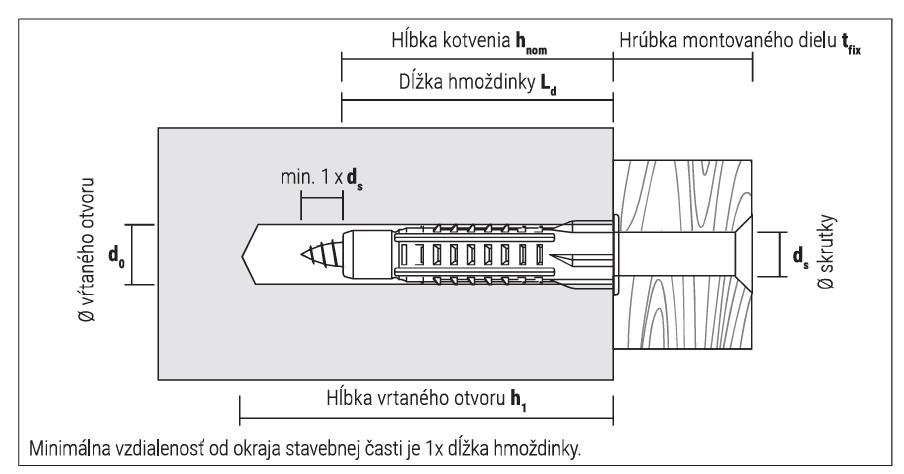 Inštalujeme skrutku, ktorá musí byť dlhšia ako hmoždinka a materiál spolu. Skrutka musí prejsť cez koniec hmoždinky, aby sa dobre rozoprela do 4 strán.