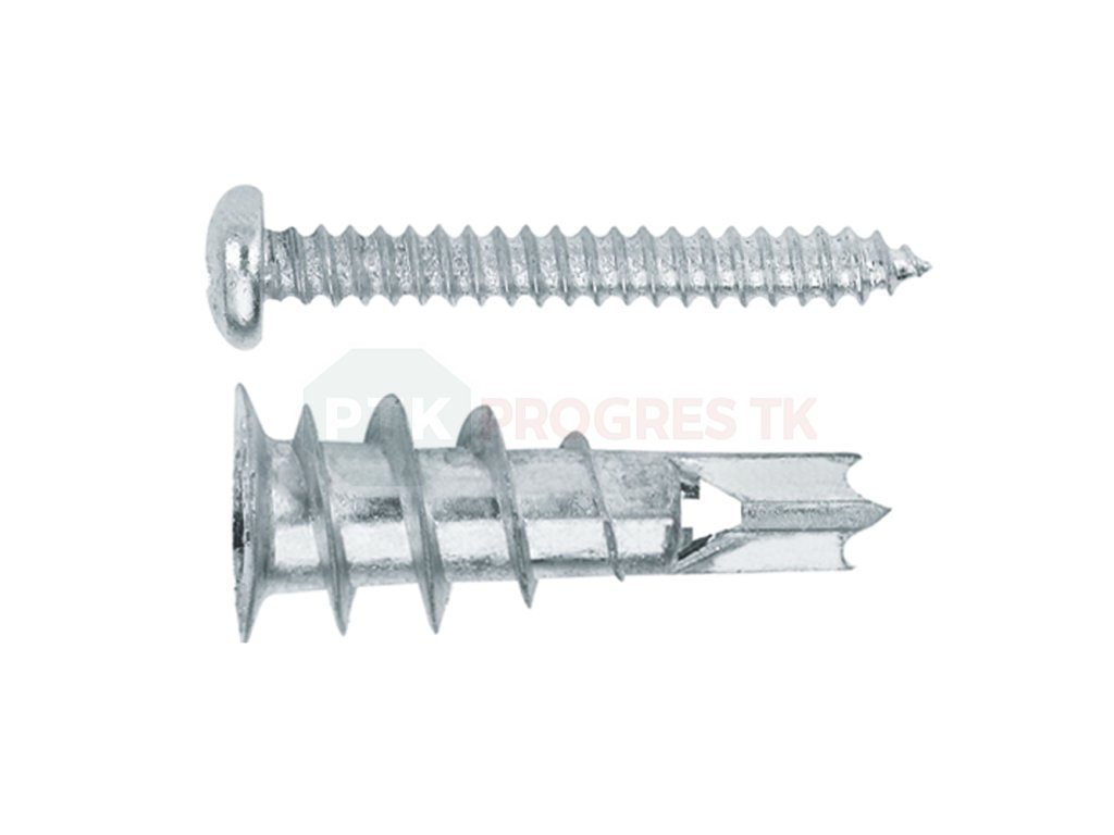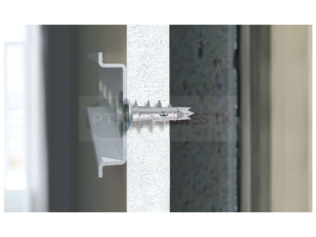 - Samovrtná konštrukcia umožňuje jednoduchú montáž priamo do sadrokartónu bez potreby predvŕtavania otvoru – hmoždinka sa iba zaskrutkuje.