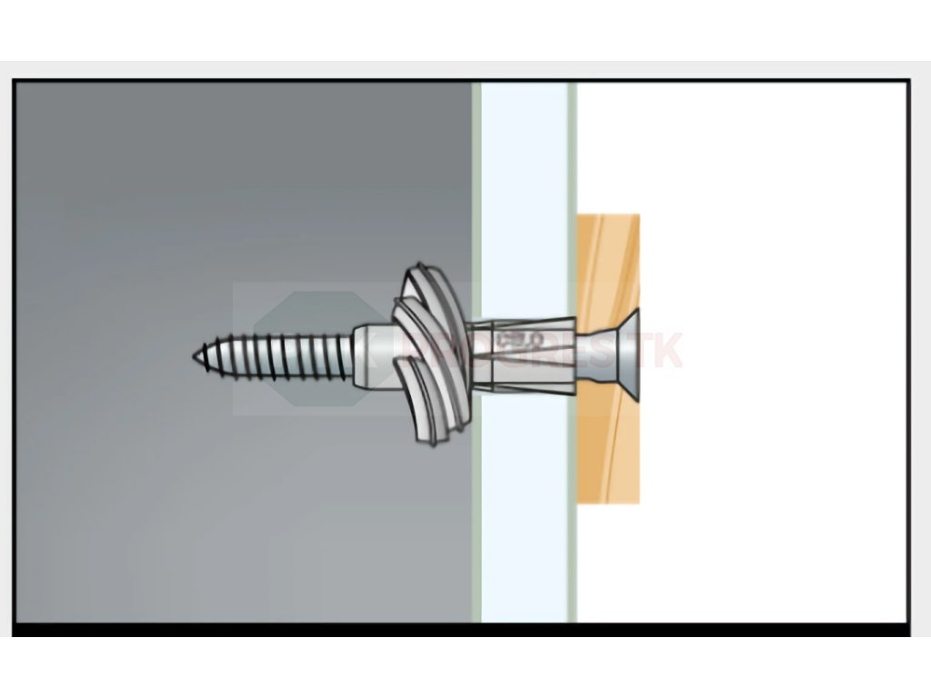 Použijeme dlhšiu skrutku ako je hmoždinka a materiál spolu aby skrutka prešla cez koniec hmoždiny a dobre sa roztiahla.