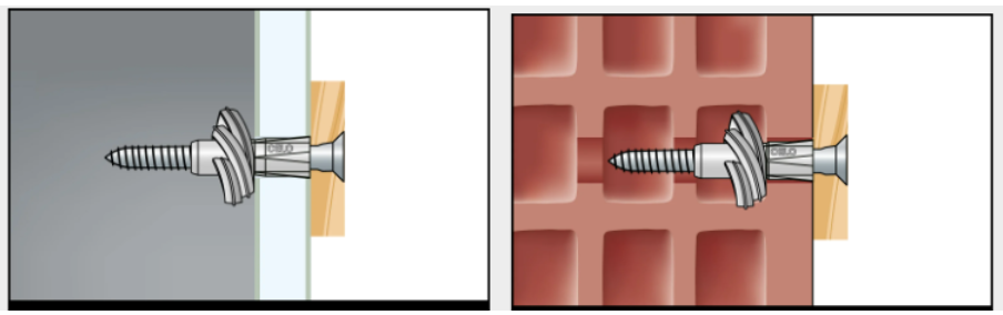 Do sadrokartónu a dierovanej tehly takisto požijeme dlhšiu skrutku ako je materiál a hmoždinka spolu aby sa mohla hmoždinka