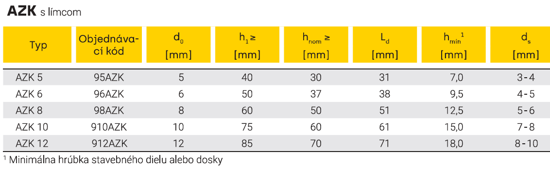 AZ a AZK možno použiť so skrutkami do dreva aj drevotriesky s rôznymi priemermi.