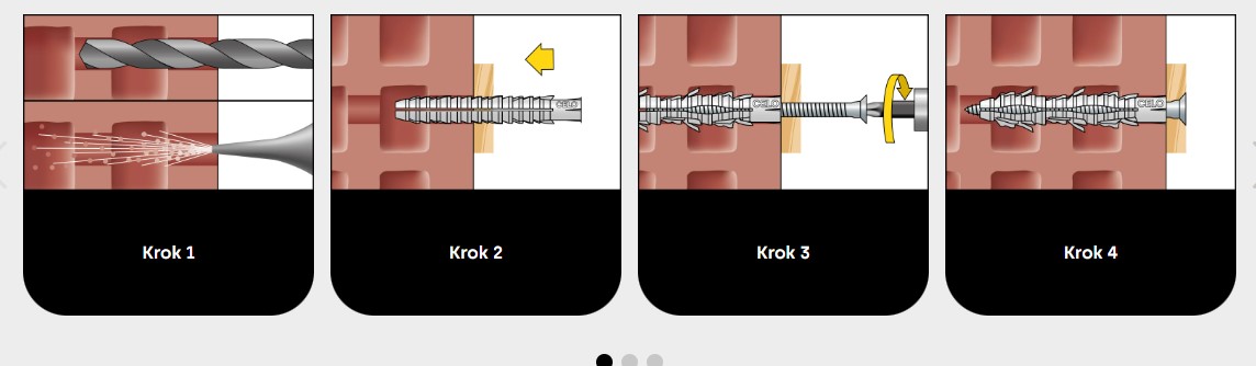 Extra dlhá expanzná plocha umožňuje upevnenie v pevnom a perforovanom materiáli s hustou a poréznou štruktúrou (napr. staré budovy).