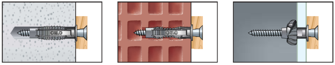Hmoždinka FX je vyrobená z vysokokvalitného nylonu odolného voči starnutiu a možno ju použiť s rôznymi typmi skrutiek, ako sú skrutky do dreva, skrutky do drevotriesky alebo samorezné skrutky, čo zaručuje bezpečné a pevné upevnenie.