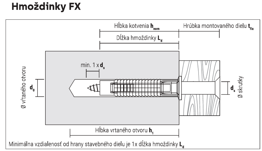 Hmoždinka FX je vybavená antirotačnými výstupkami, ktoré zabraňujú rotácii vo vŕtanom otvore a optimálne prenášajú silu do základného materiálu.