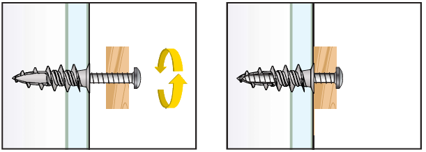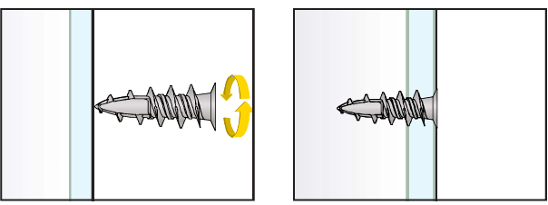 Použijeme skrutku do dreva v priemere 4,5 mm a dĺžku volíme podľa hrúbky pripevňovaného materiálu