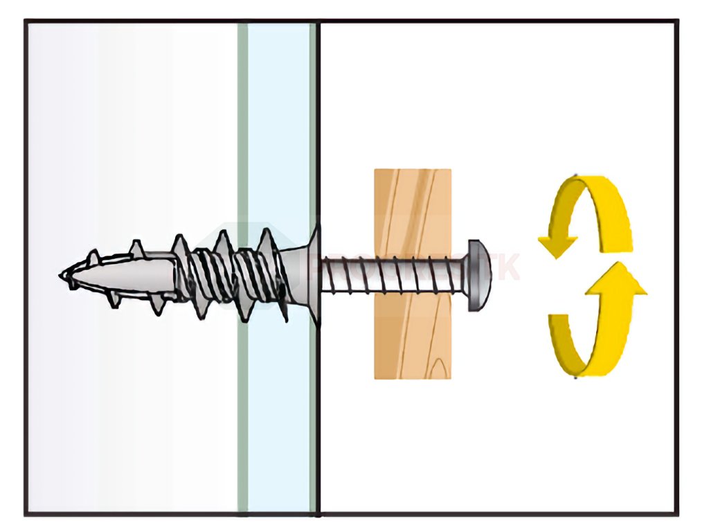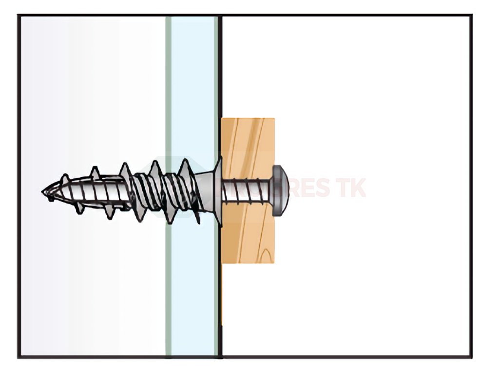 Použijeme skrutku do dreva v priemere 4,5 mm a dĺžku volíme podľa hrúbky pripevňovaného materiálu