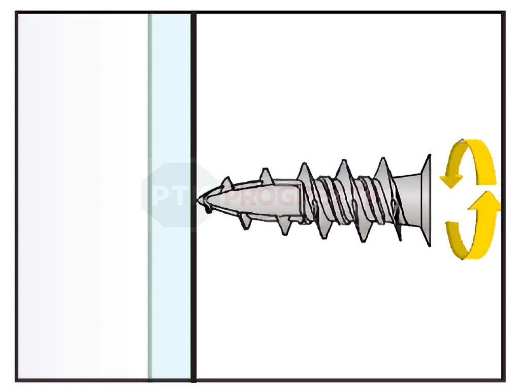 Použijeme vhodný uťahovací hrot PH 2 a zaskrutkujeme bez predvŕtania do sadrokartónu