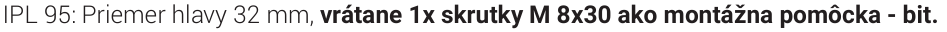 Nylonová hmoždinka je odolná voči starnutiu a poveternostným vplyvom. Každá krabica obsahuje 1 ks skrutku M8x30, ktorá slúži ako uťahovací bit.