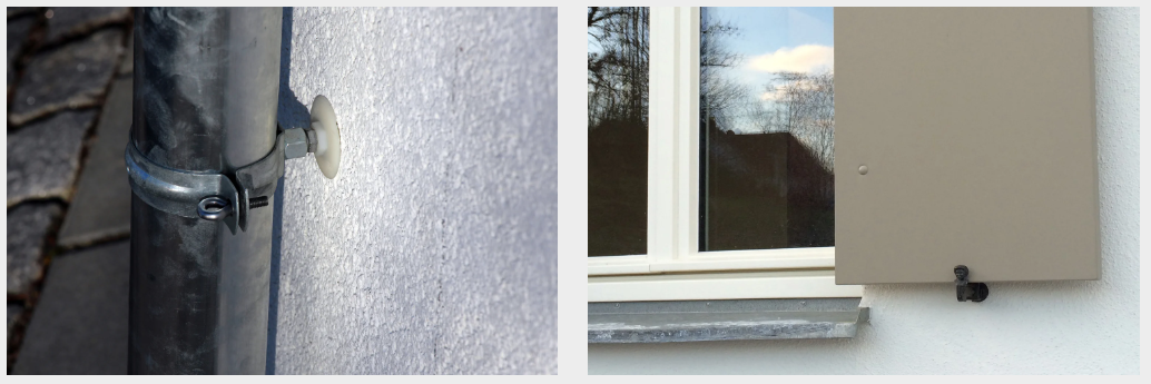 Predmontovaný špeciálny závitový kolík: ideálna vzdialenosť 30 mm dažďovej spádovej rúry od nastavenia steny o ďalších 25 mm.