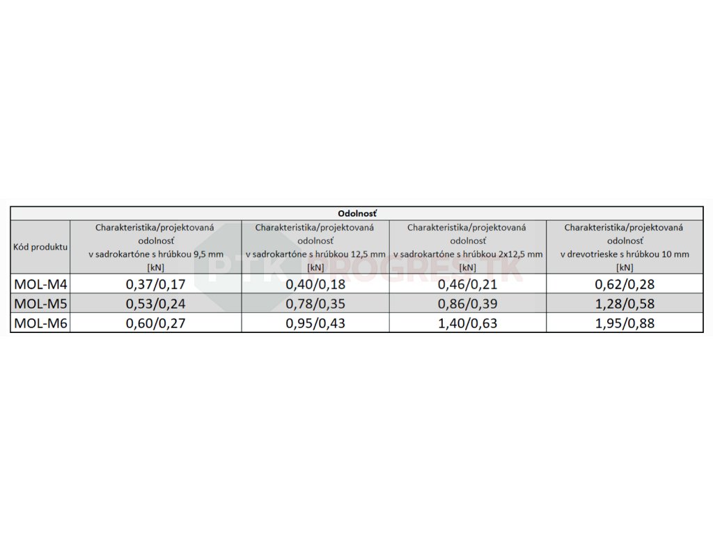 - Konštrukcia hmoždinky: Ramená manžety po zaskrutkovaní vytvoria na zadnej strane sadrokartónovej dosky veľkú prítlačnú plochu