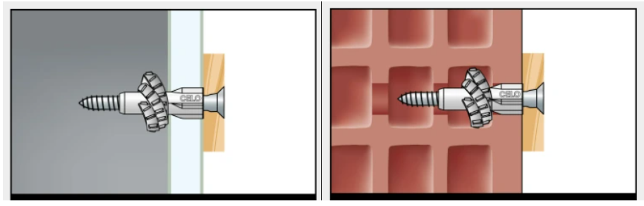 Pri inštalácii skrutky s hmoždinkou do sadrokartónu a dutých tehál musí byť samozrejme skrutka dlhšia ako hmoždinka spolu s materiálom a zároveň musíme skrutkovať dlhšie, aby sa nám hmoždinka zauzlila.