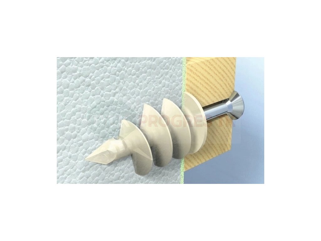 Plastové špirálové skrutky pre montáž do polystyrénu WK-DS sú určené na upevnenie ľahkých nekonštrukčných prvkov (max. do 5 kg/ks) na fasády stien z polystyrénu. Odporúča sa pre montáž prvkov ako sú: značky, domové čísla, poštové schránky, svetelné prvky, detektory pohybu, kamery a pod. Skrutkovacie spojky umožňujú zachovať kontinuitu tepelnej izolácie v mieste montáže, aby nevznikajú tepelné mosty. Tieto hmoždinky/skrutky sú vyrobené z kvalitného polyamidu, ktorý zaručuje odolnosť voči meniacim sa poveternostným podmienkam. Prvky sú do hmoždiny pripevnené skrutkou s priemerom 4,5 mm. Nie sú určené na konštrukčné spoje alebo tie, ktoré sú vystavené značným dynamickým silám (žalúzie, žalúzie, okenné markízy a pod.).