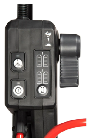 Kosačka má priestor až pre 4 akumulátory, pričom automaticky prepína medzi dvojicami, čo predlžuje pracovný čas bez nutnosti výmeny.