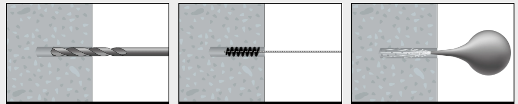 Vyvŕtame otvor podľa priemeru kotvy a dôkladne ho vyčistíme a vyfúkame.