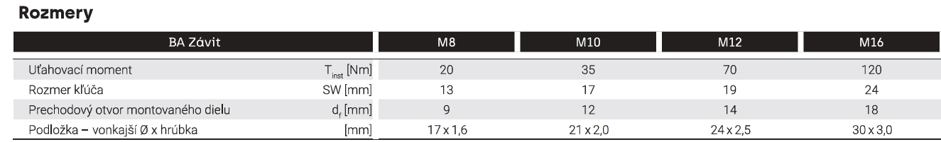 Rýchloupínacia kotva BA z nehrdzavejúcej ocele A4 je vhodná na rýchlu inštaláciu do betónu bez trhlín, ako potvrdzuje hodnotenie ETA (možnosť 7). Vďaka svojej odolnosti proti korózii je vhodná najmä na vonkajšie aplikácie, podkonštrukcie fasád, zábradlia atď. Rozmery M8 možno použiť aj v hustom prírodnom kameni.