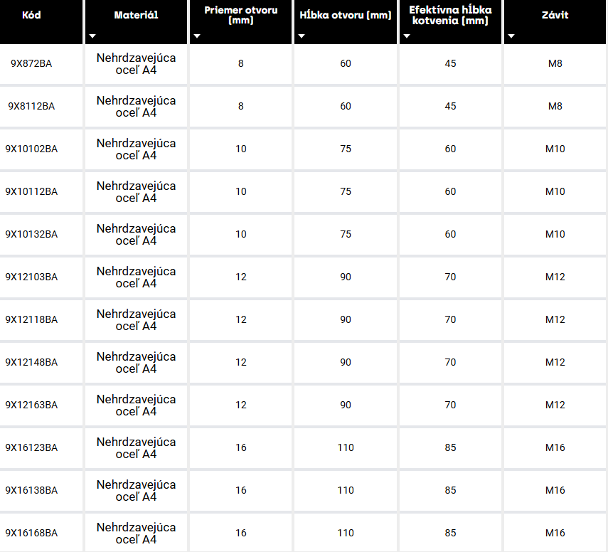 | Kategória: | Nerezové kotvy do betónu |