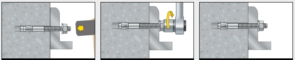 Do otvoru vsunieme cez príslušný materiál kotvu a následne ju dotiahneme momentovým kľúčom. Moment si pozrieme v tabuľke vyššie.