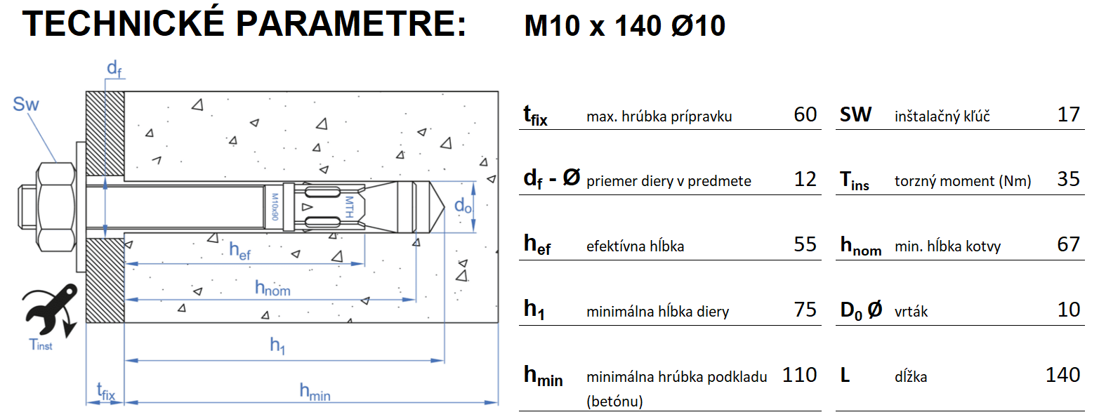 Pomocou momentového kľúča dotiahnite maticu určeným kontrolovaným uťahovacím momentom (torque). Počas uťahovania sa rozpínacie segmenty roztiahnu a kotva sa pevne zafixuje v betóne.