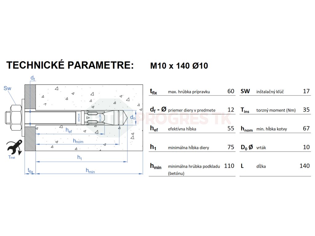 Kotva M10x140 PTK prevleková oceľová bal. 50ks