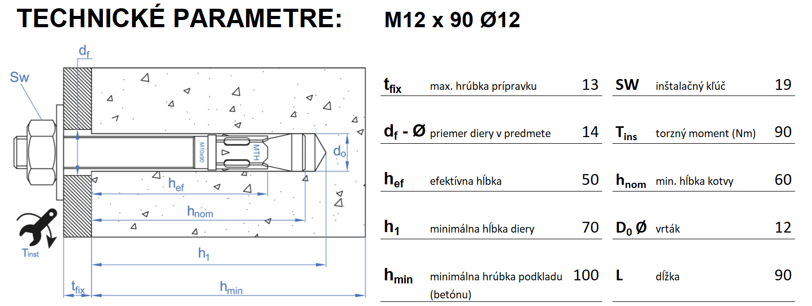 Pomocou momentového kľúča dotiahnite maticu určeným kontrolovaným uťahovacím momentom (torque). Počas uťahovania sa rozpínacie segmenty roztiahnu a kotva sa pevne zafixuje v betóne.