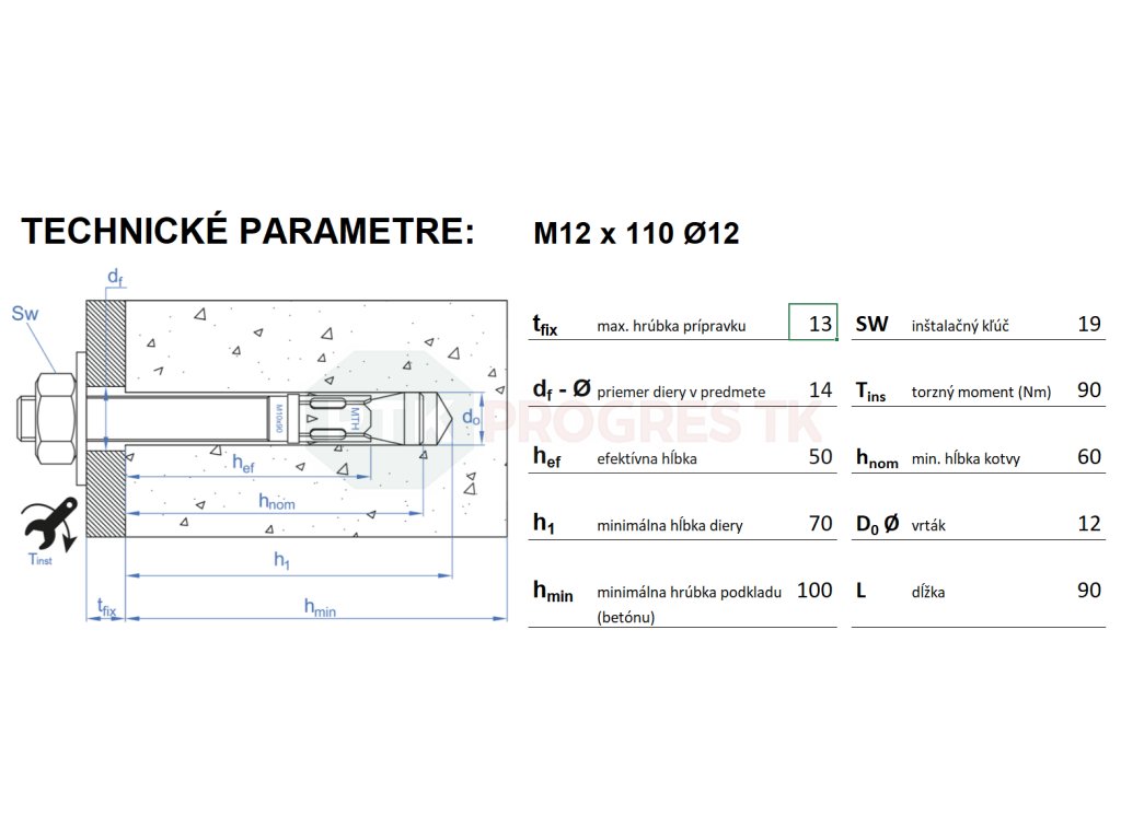 Kotva M12x110 PTK prevleková oceľová bal. 40ks