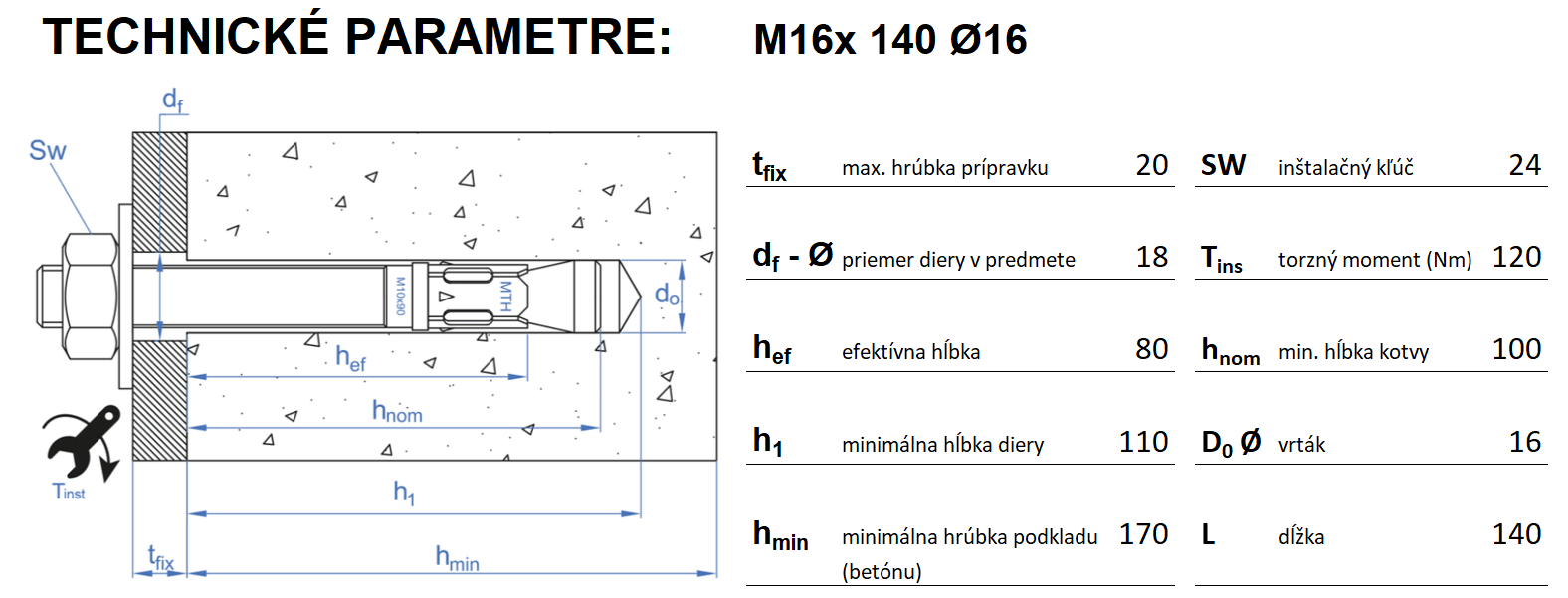 Pomocou momentového kľúča dotiahnite maticu určeným kontrolovaným uťahovacím momentom (torque). Počas uťahovania sa rozpínacie segmenty roztiahnu a kotva sa pevne zafixuje v betóne.