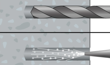 Vyvŕtajte otvor do betónu s priemerom a hĺbkou podľa technických parametrov kotvy. -