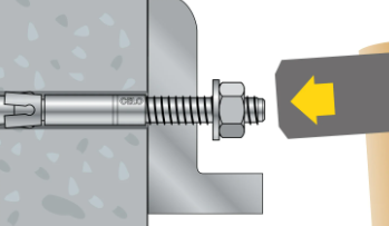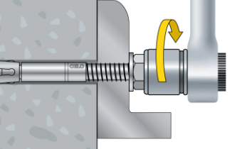 Pomocou momentového kľúča dotiahnite maticu určeným kontrolovaným uťahovacím momentom (torque). Počas uťahovania sa rozpínacie segmenty roztiahnu a kotva sa pevne zafixuje v betóne.