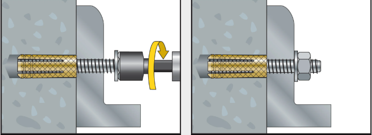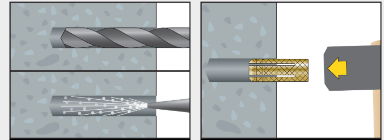 - Hĺbka nastavenia metrickej skrutky zodpovedá približne dĺžke kotvy (závisí tiež od pevnosti základného materiálu). Mosadzná hmoždinka je vhodná pre vonkajšie aplikácie.