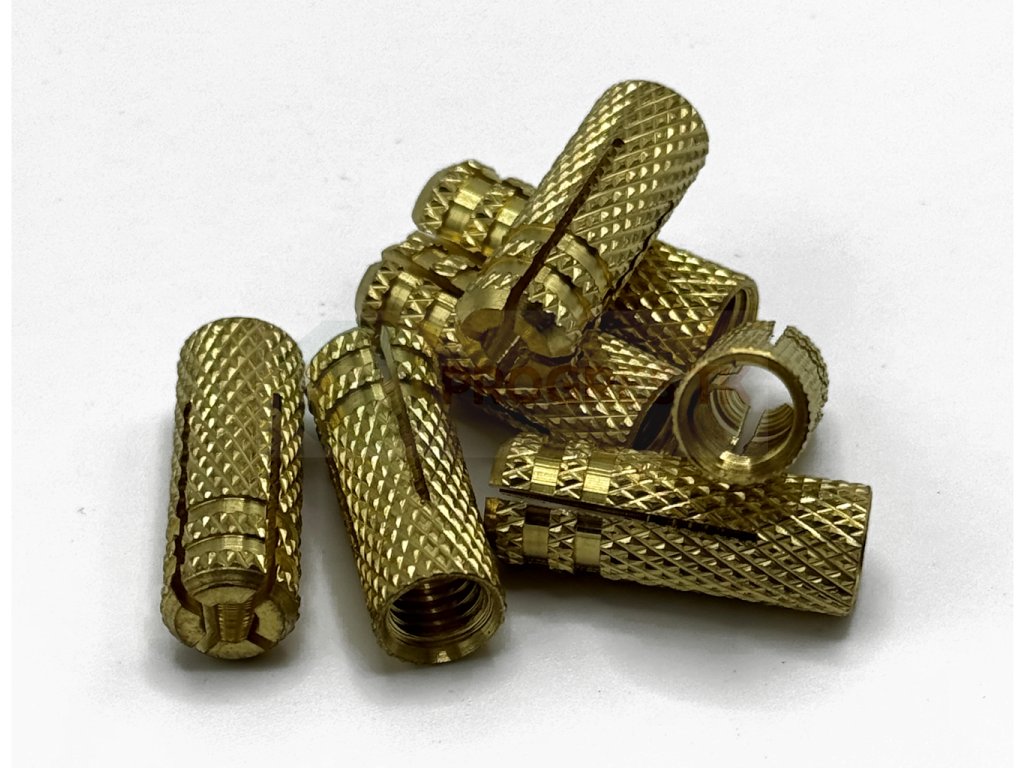 - Mosadzná hmoždinka s vnútorným závitom pre ľahké a stredné zaťaženie