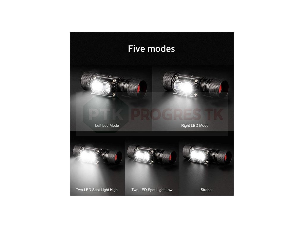 - 5 režimov svietenia: pravá LED 100%, ľavá LED 100%, obe LED 100%, obe LED 50%, blikanie