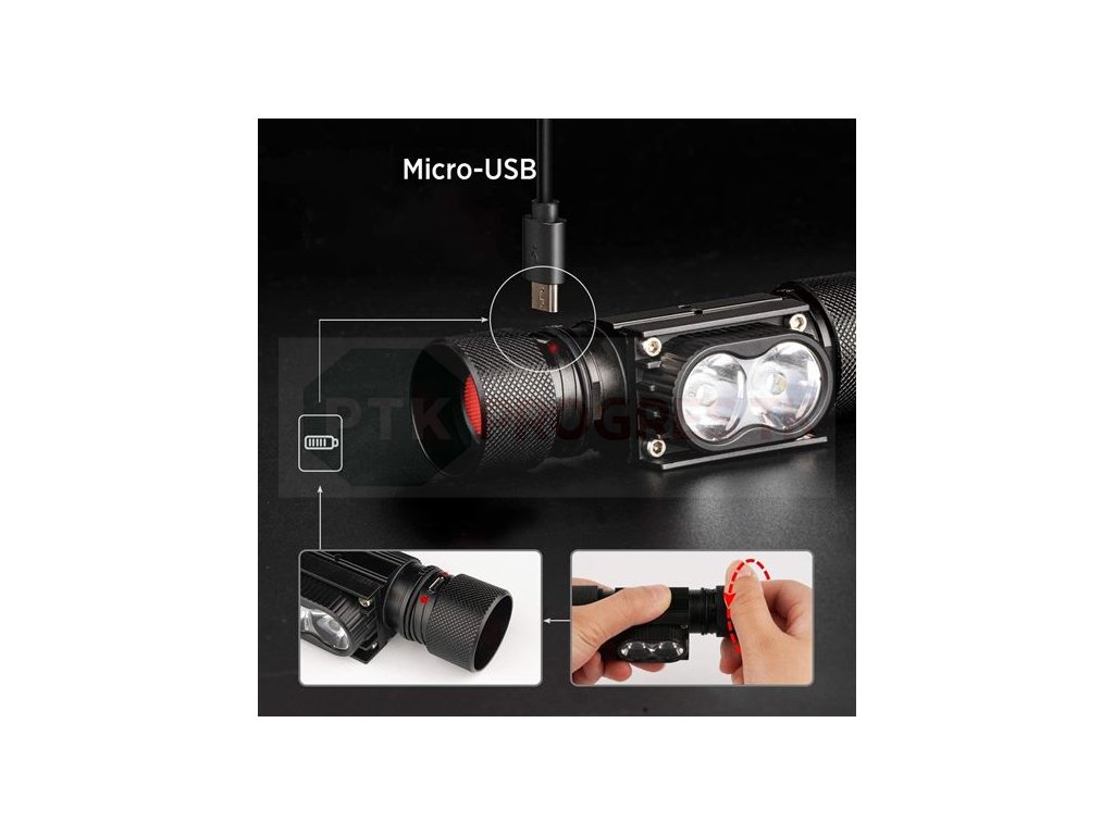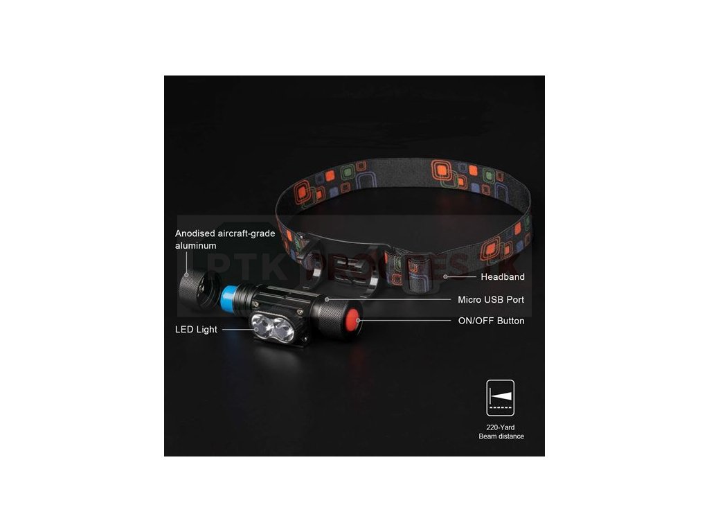 - nabíjacie LED čelové svietidlo s vysokým svetelným tokom a dvomi výkonnými XPG LED diódami