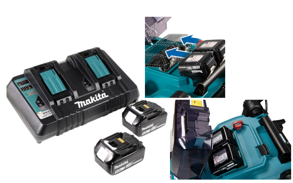 - Dodávané s 2 x akumulátor BL1850B (5,0Ah) a dvojnabíjačka