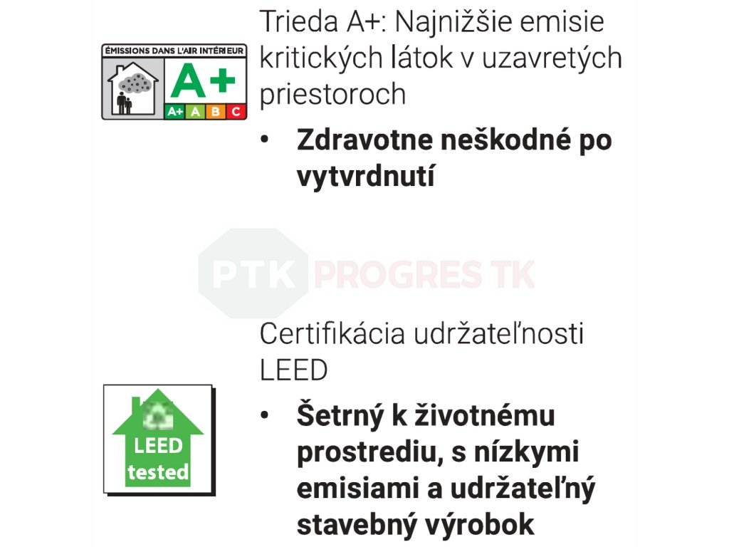 Disponuje tiež certifikáciou udržateľnosti LEED pre budovy šetrné k životnému prostrediu, nízkym obsahom znečisťujúcich látok a nízkymi emisiami. Produkt bol testovaný na použitie v oblastiach náchylných na zemetrasenie (trieda C1 / C2) kvôli ešte väčšej flexibilite použitia. ResiFIX VY ECO SF vydrží po úplnom vytvrdnutí teplotný rozsah od -40 ° C do + 80 ° C.