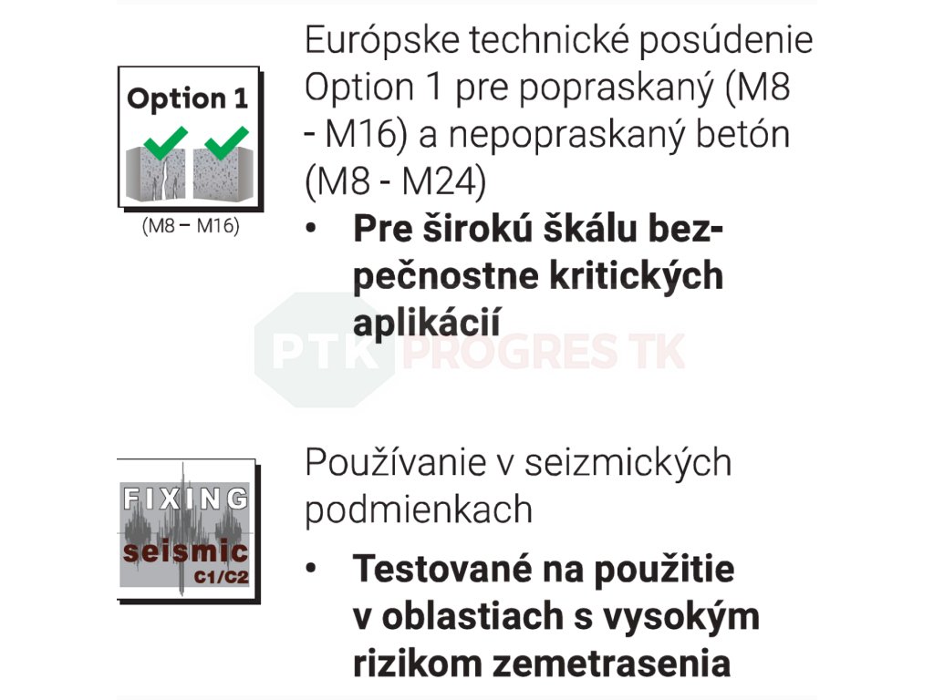 Výrobok je vhodný na použitie ako kotva vystavená seizmickému zaťaženiu podľa európskych technických noriem.