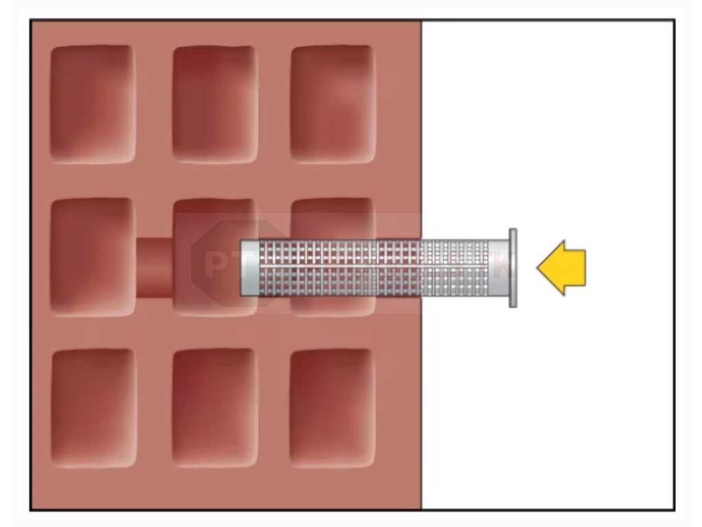 - Pred vytlačením malty do otvoru najskôr inštalujeme sitko (plastové/kovové)