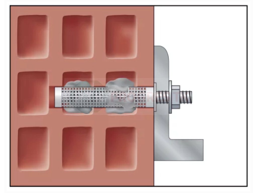 ResiFIX je schválený pre veľmi vysoké zaťaženie. Je teda vhodný pre náročné aplikácie. Inštalácia bez expanzných síl kotevných tyčí, kotevných čapov, štvorcových rúrok, skrutiek v dutých a plných tehlách a betóne.