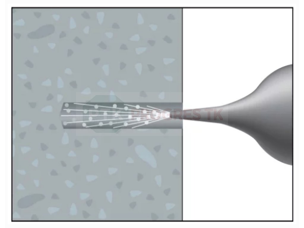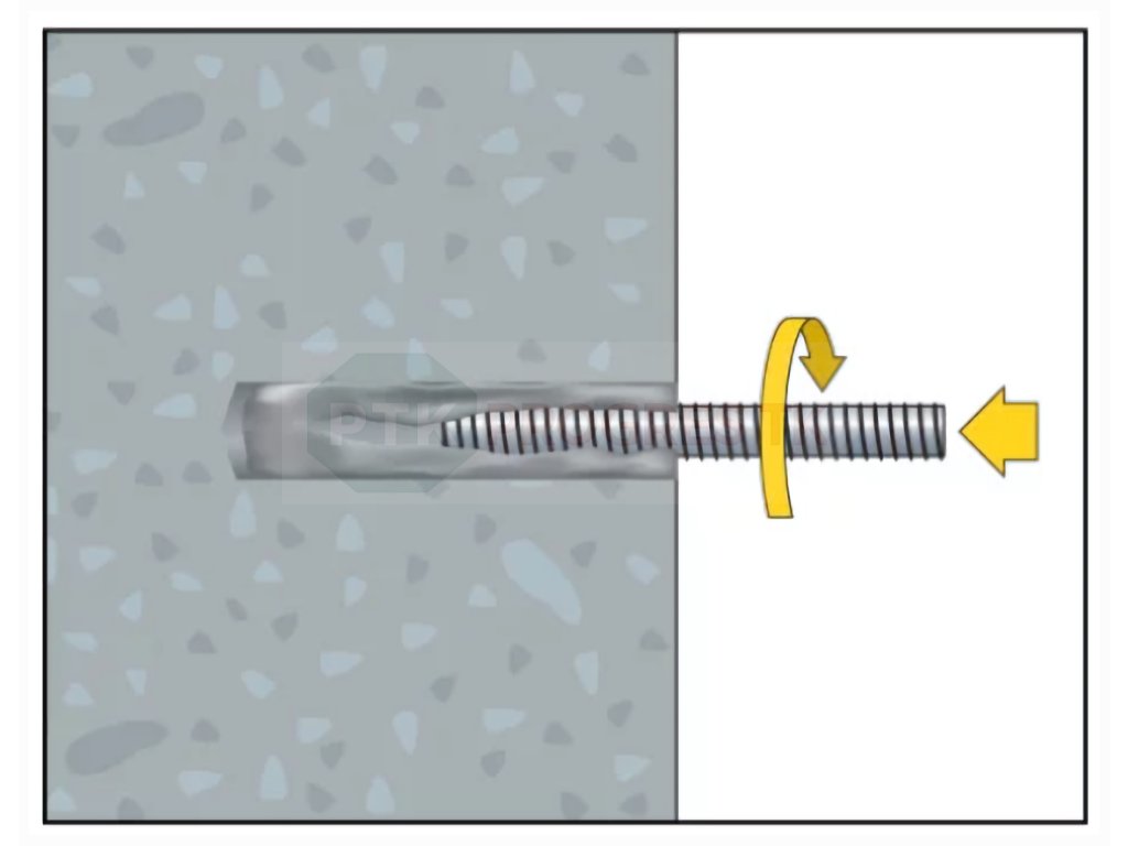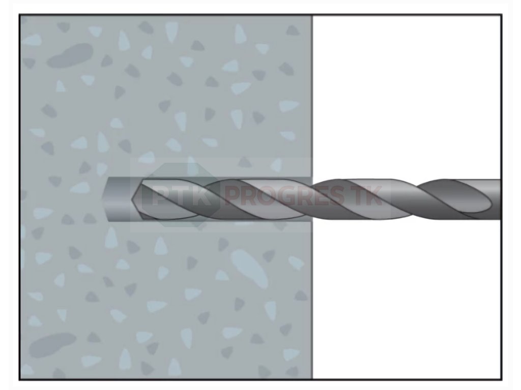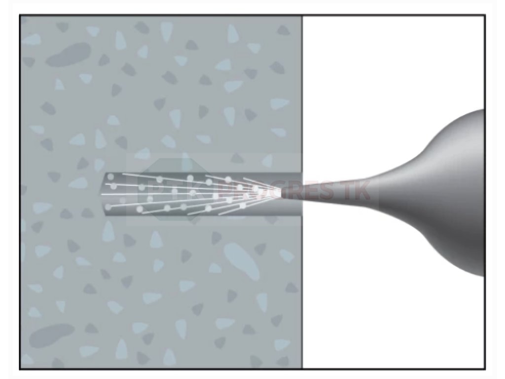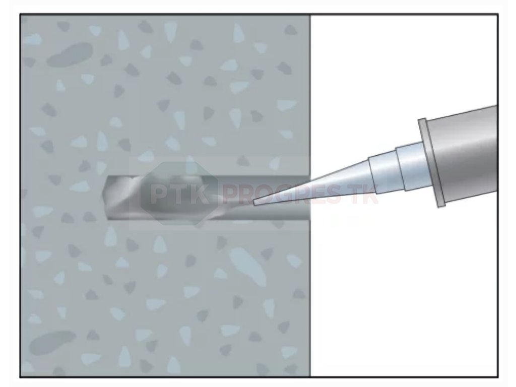 - Následne vytlačíme maltu do otvoru a osadíme kotevnú tyč kruhovým pohybom.