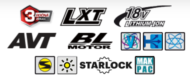 - Kompatibilné s akumulátormi LXT 18 V: 6,0 Ah / 5,0 Ah / 4,0 Ah / 3,0 Ah / 2,0 Ah / 1,5 Ah