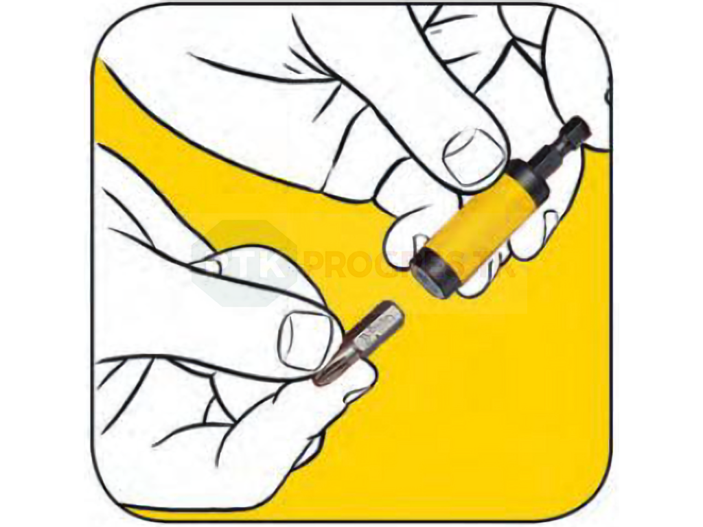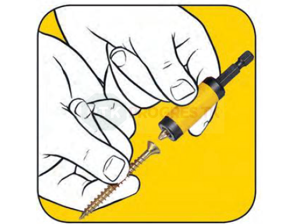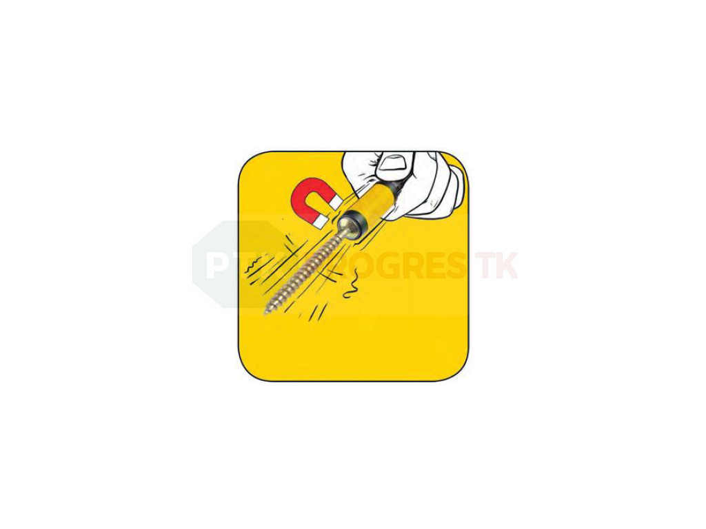 Vďaka integrovanému silnému prstencovému magnetu pevne pridrží skrutku na hrote bitu, čím eliminuje potrebu jej manuálneho pridržiavania.