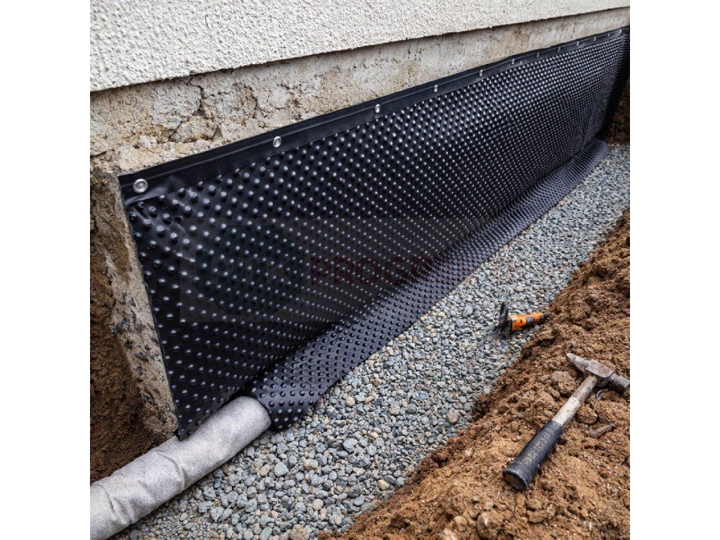 najmä pri ochrane hydroizolácie základov, ale aj ako separačná vrstva pri podlahách alebo zelených strechách. Fólia je vyrobená z odolného plastu (HDPE), ktorý je pevný, pružný a má dlhú životnosť.