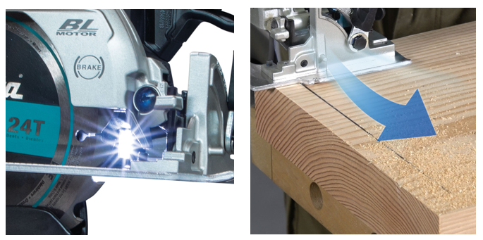 Píla používa 165 mm kotúč a dosahuje maximálnu hĺbku rezu 57 mm pri 90°, 41 mm pri 45° a 37 mm pri 50°, čo je ideálne pre rezanie dosiek, hranolov alebo stolárskych materiálov. Kompaktný a krátky dizajn zaručuje lepšiu ovládateľnosť a manévrovateľnosť aj v obmedzených priestoroch. Prepracovaný systém dvojitého LED osvetlenia a ofukovania odfukuje piliny z línie rezu a zlepšuje viditeľnosť pracovnej oblasti.