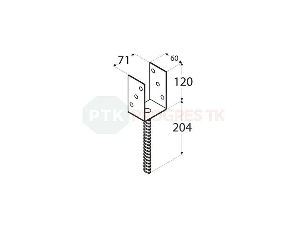 Ide o kovový spojovací prvok určený na ukotvenie dreveného stĺpika do betónu, zabezpečenie stability konštrukcie a oddelenie dreva od priameho kontaktu so základom.