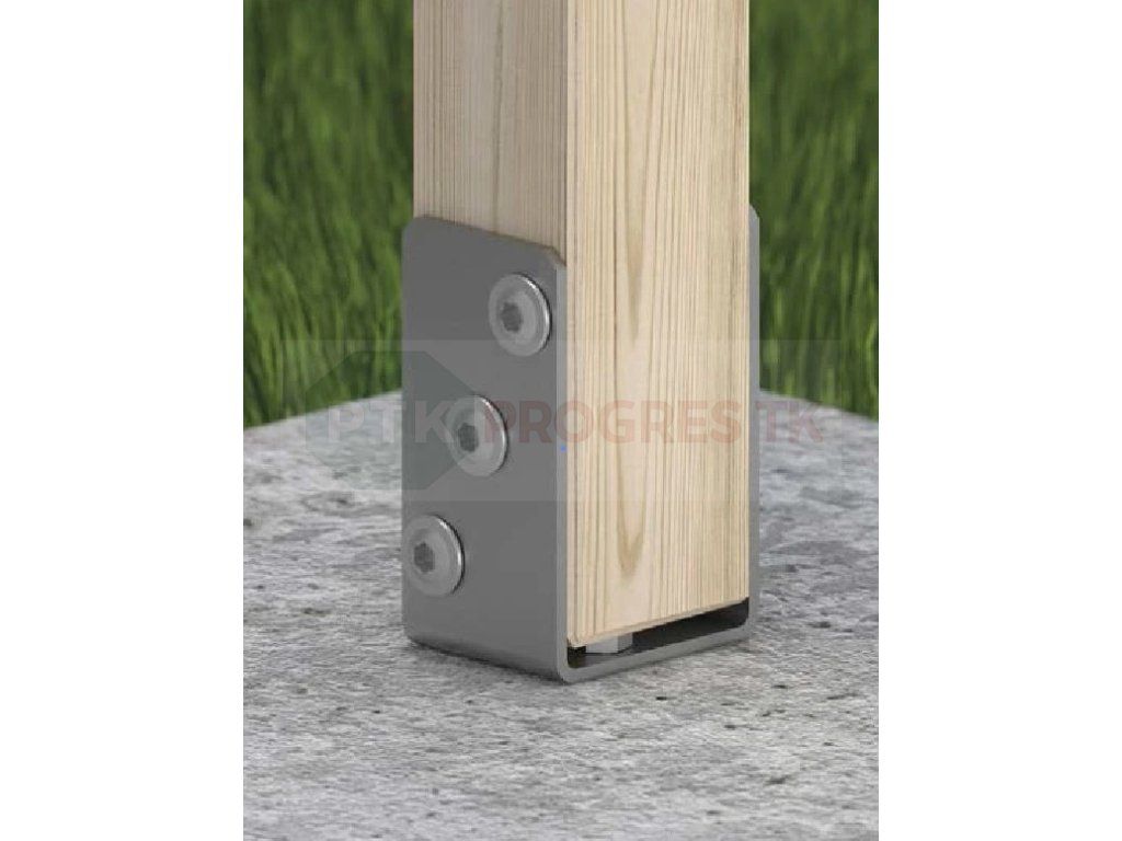 - Upevnenie stĺpov a pilierov: Slúžia na bezpečné prichytenie drevených stĺpov k pevnému základu.