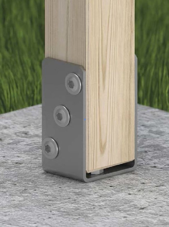 - Upevnenie stĺpov a pilierov: Slúžia na bezpečné prichytenie drevených stĺpov k pevnému základu.
