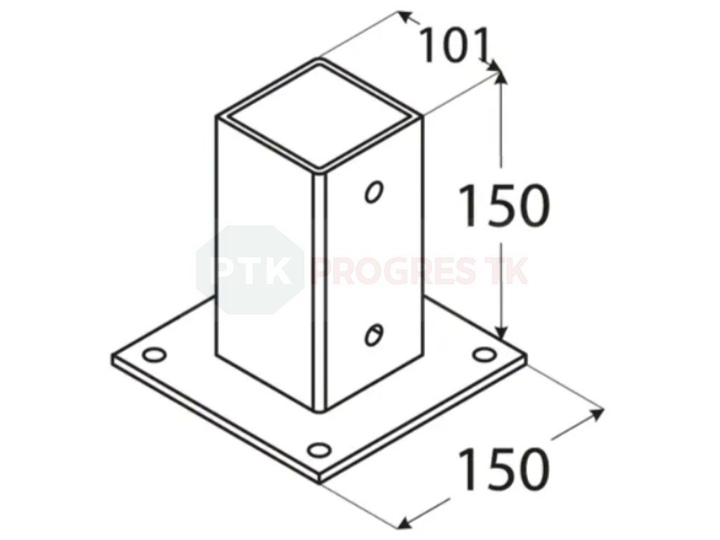 Pätka stĺpika PSP s obdĺžnikovým podstavcom je praktické riešenie pre stabilné ukotvenie drevených stĺpov do betónového základu. Zabezpečuje pevné spojenie a zároveň chráni drevo pred priamym kontaktom s vlhkosťou, čím predlžuje jeho životnosť.