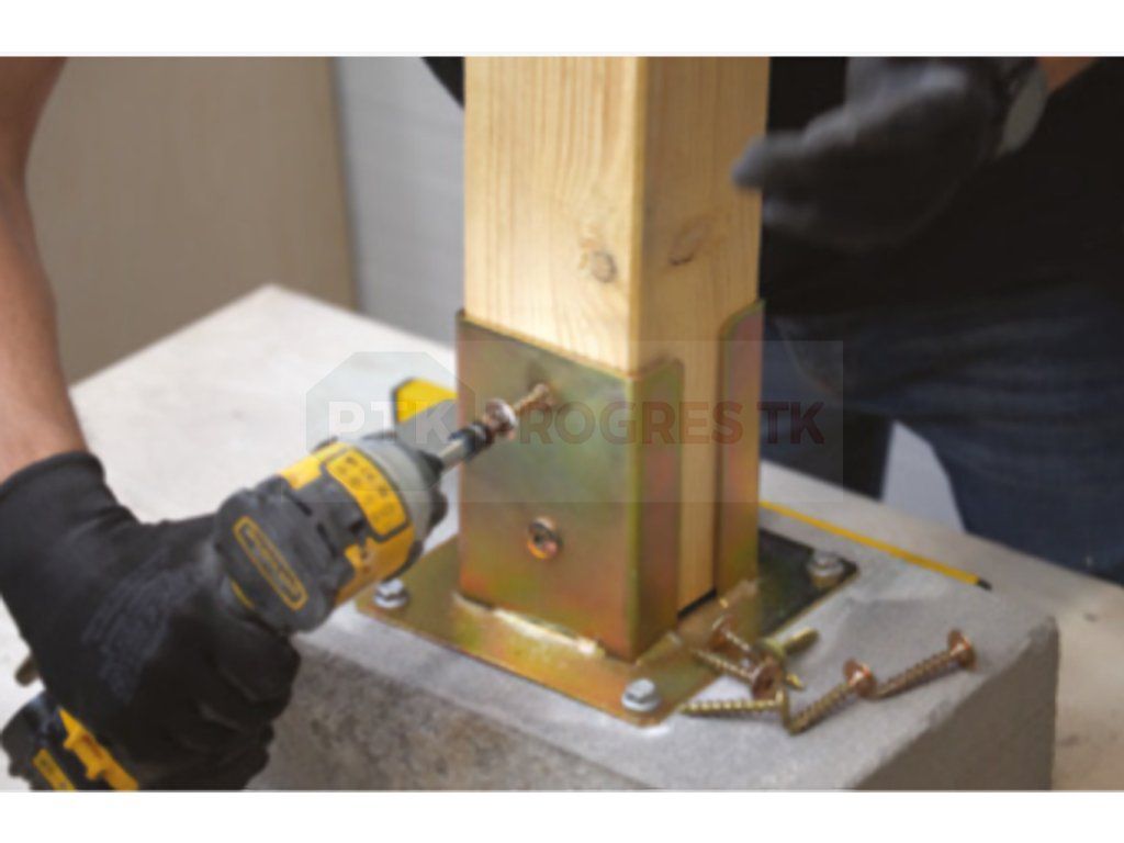 - Spojenie dreva a betónu: Umožňuje jednoduché a pevné spojenie drevených prvkov s betónovým základom alebo podkladom.
