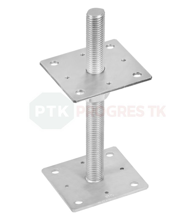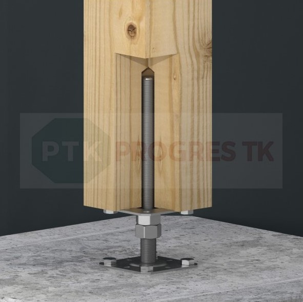 Nastaviteľná výška: Pätka je vybavená závitovou tyčou, ktorá umožňuje jednoducho určiť a nastaviť výšku dreveného prvku. To pomáha pri montáži pergol, altánkov, prístreškov alebo plotov.