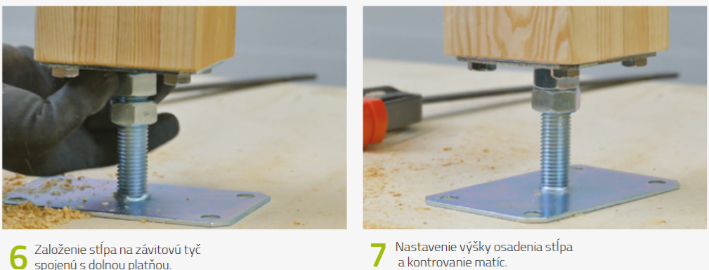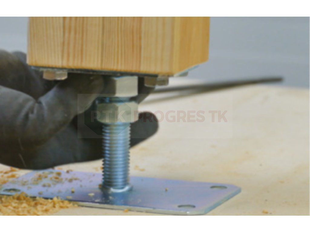 Vďaka skrutkovému mechanizmu (závitová tyč / nastavovacia časť) je možné jemne korigovať výšku stĺpa, aby bol v rovine, aj pri nerovnom podklade. -